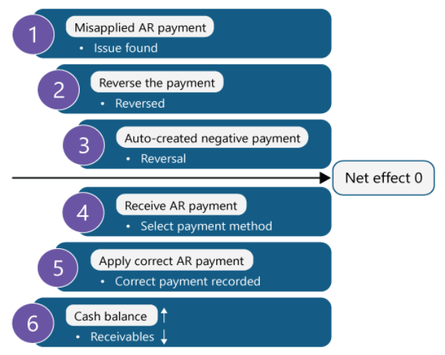 For example, you receive a $100 payment for AR sales invoice INV_001 that had a balance of $200, then reverse it because you applied the wrong amount. The AR sales invoice still carries a balance of $200 owed. You can now receive and apply the correct amount to INV_001.