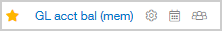 Reports can have multiple icons. In the following example, the GL report has icons indicating that it's a favorite, memorized, scheduled, and public.
