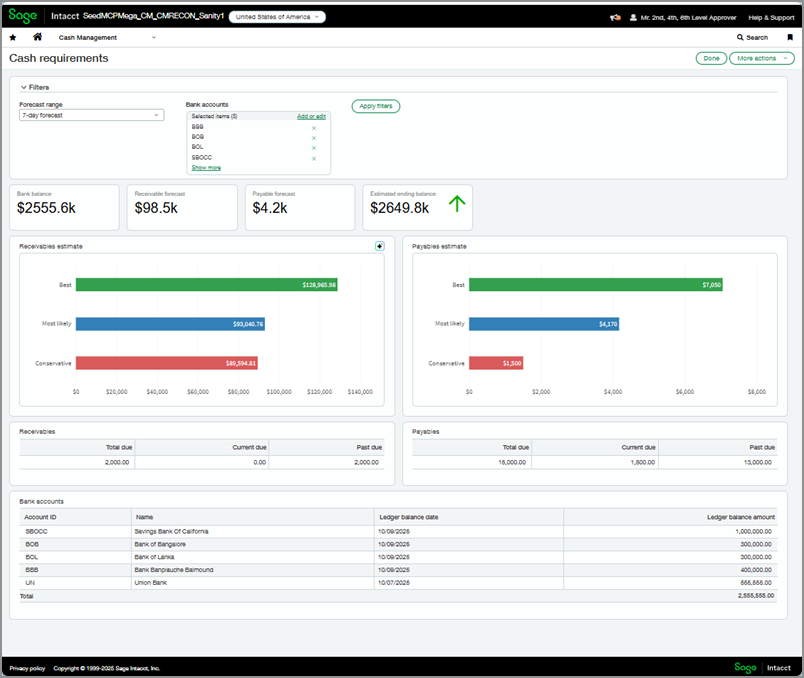 • Cash flow insights: Use cash requirements estimates to support your decision making.